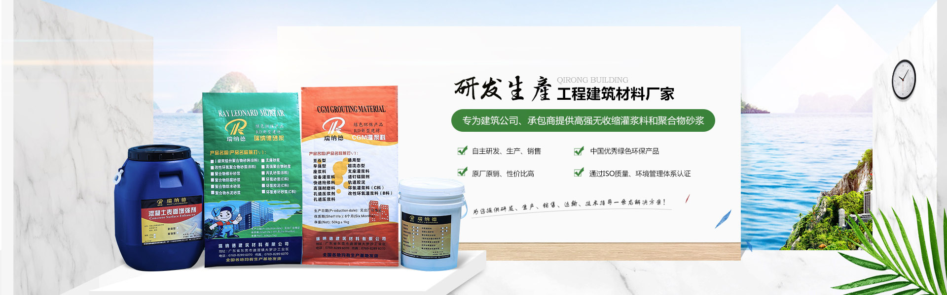 東莞市戚榮建筑材料有限公司是東莞市瑞納德建筑材料有限公司旗下子公司,是一家集研發、生產、銷售、技術服務為一體的技術型企業,,并通過ISO9001:2000質量管理體系及ISO14001:2004環境管理體系世界標準認證?,F已在廣東、浙江、北京、河南鄭州、沈陽、重慶等均有生產基地。